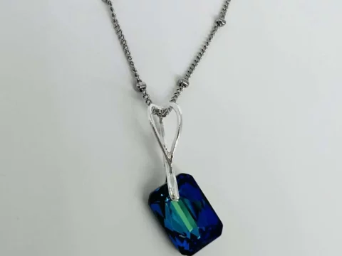 €39,90Μοναδικό κολιέ απο κρύσταλλο Swarovski σε γεωμετρικό σχήμα . Λατρεμένο χρώμα vermuda blue που δεν περνάει απαρατήρητο. Είναι με ασημένιες λεπτομέρειες .