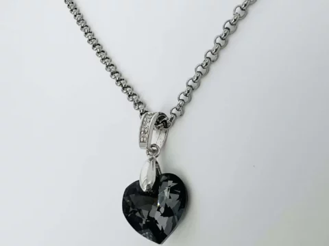 Price range: €53,90 through €55,90Μαύρη καρδιά Swarovski σε ατσάλινη αλυσίδα από ανοξείδωτο ατσάλι . Έχετε δύο επιλογές χρώματος στην αλυσίδα ,ασημί ή χρυσό ,ανάλογα την προτίμησή σας. Έρωτας με την πρώτη ματιά.