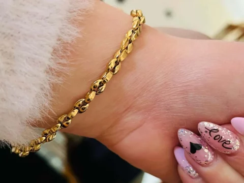 €19,90Βραχιόλι επιχρυσωμένο ή ασημί από ανοξείδωτο ατσάλι. Διαφορετικό,καθημερινό για όλες τις ώρες. Αν θέλεις να ξεχωρίζεις ,βρές τα πιο στιλάτα κοσμήματα στη νέα συλλογή μας.