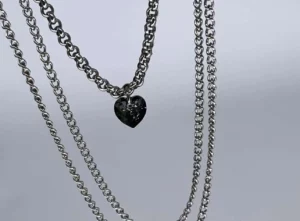 €33,60Κολιέ από τρείς αλυσίδες ανοξείδωτο ατσάλι και μία μικρή μαύρη καρδιά Swarovski στο κέντρο. Είναι ένα μοντέρνο κολιέ με στίλ και απλότητα που θα φοράτε κάθε μέρα.
