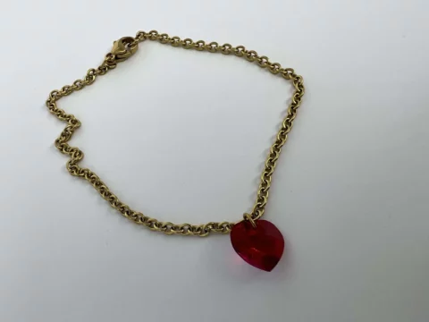 €12,90Βραχόλι χρυσό με μία μικρή κόκκινη καρδιά Swarovski. Η αλυσίδα του είναι λεπτή απο ανοξείδωτο ατσάλι. Δεν μαυρίζει,το φοράτε άφοβα όλες τις ώρες.