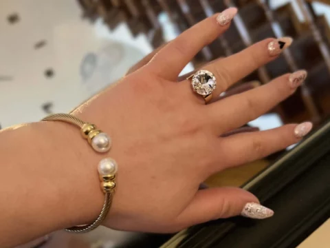 €34,90Στριφτό βραχιόλι επιχρυσωμένο από ατσαλόσυρμα με δύο πέρλες λευκές. Έχει στίλ χειροπαίδας . Είναι ένα κόσμημα που πρέπει να έχετε στη συλλογή σας!